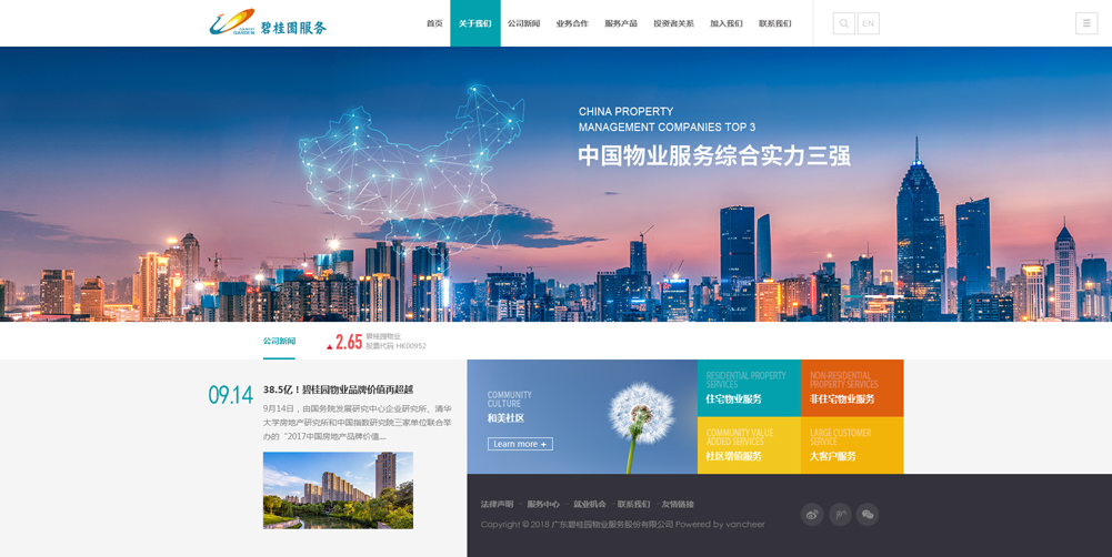 碧桂園服務(wù)控股有限公司創(chuàng)立于1992年。經(jīng)過26年的穩(wěn)健發(fā)展,公司業(yè)務(wù)涵蓋住宅、商業(yè)物業(yè)、寫字樓、多功能綜合樓、政府及其他公共設(shè)施、產(chǎn)業(yè)園、高速公路服務(wù)站、公園及學(xué)校等多種業(yè)態(tài)。 秉持“急業(yè)主所急,想業(yè)主所想”、“一切以業(yè)主為中心”的服務(wù)理念,碧桂園服務(wù)以扎實(shí)的業(yè)務(wù),精益化管理,完成英國(guó)標(biāo)準(zhǔn)協(xié)會(huì)(BSI)質(zhì)量管理體系ISO、環(huán)境管理體系ISO及職業(yè)健康安全體系三大認(rèn)證,建立完善和精益化的物業(yè)管理和服務(wù)體系。依托強(qiáng)大的線下服務(wù)體系,整合社區(qū)商業(yè)資源,致力讓業(yè)主體驗(yàn)物業(yè)服務(wù)的美好,圍繞業(yè)主不動(dòng)產(chǎn)保值增值,提供全生命周期服務(wù)。