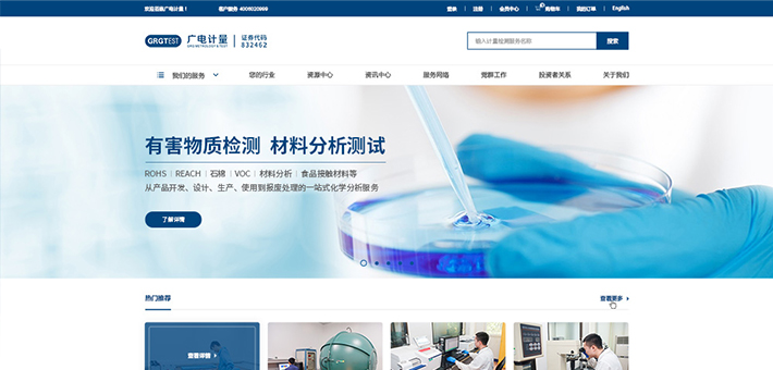 廣州廣電計(jì)量檢測股份有限公司(簡稱GRGT)定位行業(yè)高端,引領(lǐng)行業(yè)先鋒,歷經(jīng)近50年的發(fā)展,目前成為一家技術(shù)精湛、服務(wù)精心、管理精細(xì)的高端技術(shù)服務(wù)提供商,已成長為國內(nèi)一流的計(jì)量檢測專業(yè)機(jī)構(gòu)。 GRGT是原國家信息產(chǎn)業(yè)部電子602計(jì)量測試站,已通過國家實(shí)驗(yàn)室(CNAS)認(rèn)可,獲得中國計(jì)量認(rèn)證(CMA)和食品檢驗(yàn)認(rèn)證(CMAF),檢測與認(rèn)證結(jié)果得到國際公認(rèn)。已累計(jì)獲得國家檢測校準(zhǔn)實(shí)驗(yàn)室認(rèn)可項(xiàng)目累計(jì)達(dá)1498項(xiàng),檢驗(yàn)檢測機(jī)構(gòu)資質(zhì)認(rèn)定共計(jì)獲得53類208項(xiàng)3532個參數(shù)的認(rèn)可。子公司方廣檢測被指定為四大類國家強(qiáng)制性產(chǎn)品認(rèn)證(CCC)實(shí)驗(yàn)室。同時,得到UL、TUV、SGS等十多個國際著名檢測認(rèn)證機(jī)構(gòu)的能力認(rèn)可和授權(quán),還是是廣東省高新技術(shù)企業(yè)、廣東省中小企業(yè)公共(技術(shù))服務(wù)示范平臺、廣東省科技服務(wù)業(yè)百強(qiáng)企業(yè),擁有國家級企業(yè)技術(shù)中心、廣東省重點(diǎn)工程技術(shù)研究開發(fā)中心、廣州市企業(yè)技術(shù)中心、廣州市運(yùn)輸包裝檢測重點(diǎn)實(shí)驗(yàn)室、國家質(zhì)檢總局職業(yè)技能鑒定實(shí)訓(xùn)基地。