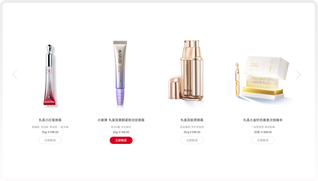 體現(xiàn)丸美整體品牌調(diào)性、展示子品牌